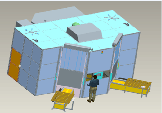 5、铝合金框架外围,激光焊接时,用升降防护门封闭工作台进出口,对激光进行有效防护;
